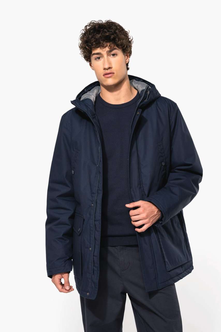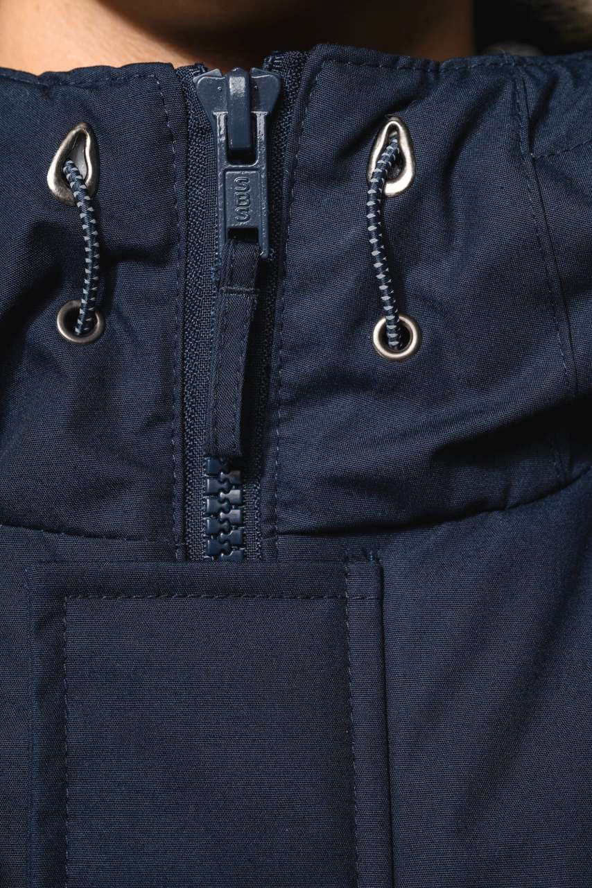 - Lined and padded hood with detachable fake fur