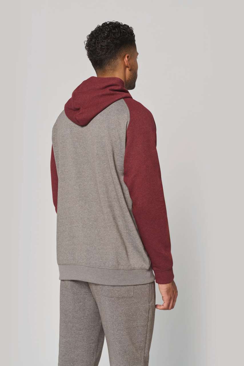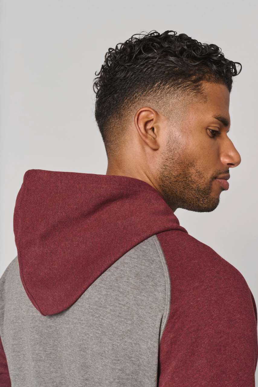 - Kontrasztos raglán ujjak és kapucni