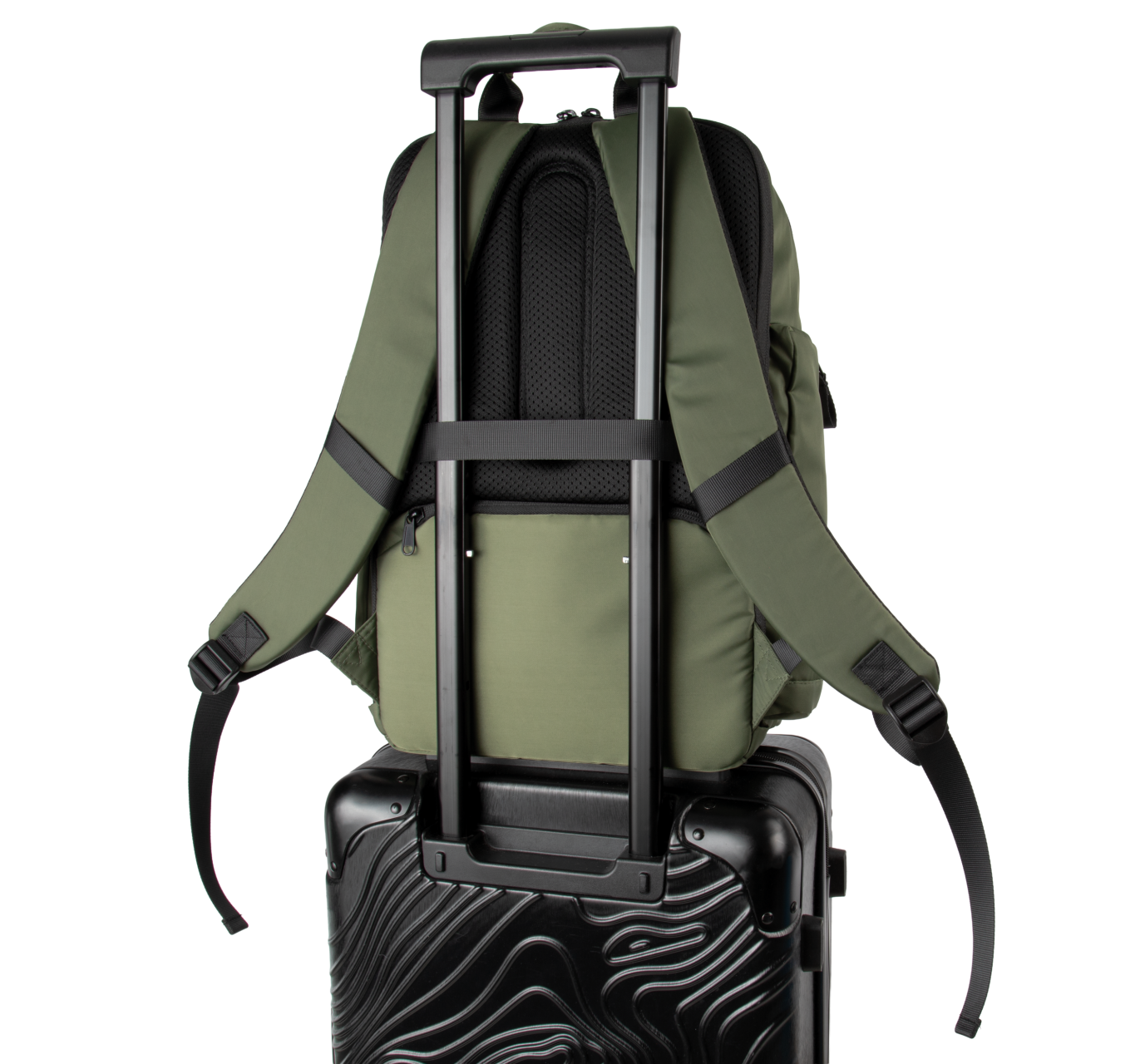 - Rear security pocket with curved zip closure, in a modern look, ideal for safely storing passports, plane tickets and phones