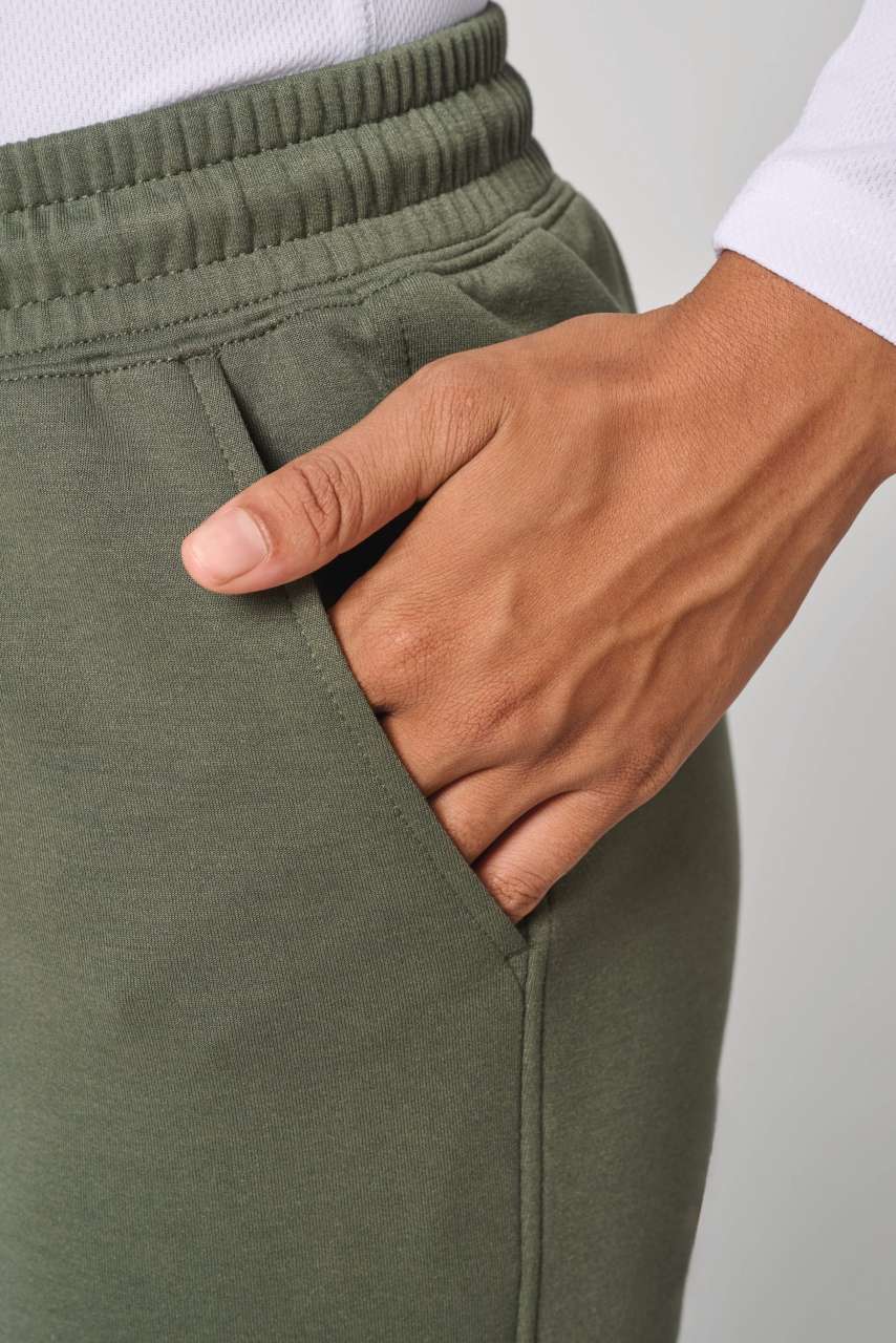 - 2 sprednja žepa s podlogo iz jerseya iz 65-% poliestra in 35-% viskoze ter 1 žep z zadrgo na hrbtni strani z lepljenimi šivi.